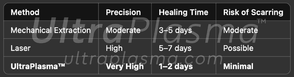 UltraPlasma™ enables non-invasive, gas-enhanced, multi-layered removal of milia with minimized recovery time and scarring. The adjustable emission spectrum ensures patient-specific settings, outperforming traditional techniques.